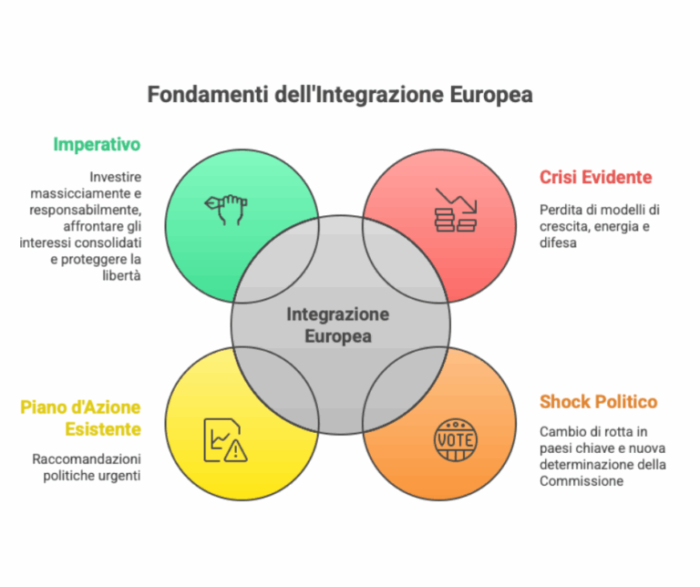 Draghi conclude il suo intervento con un richiamo alla storia: nei momenti di crisi, l’Europa ha saputo fare salti di integrazione. Tre condizioni sono necessarie: una crisi che riveli l’insostenibilità del sistema attuale, uno shock politico che mobiliti il cambiamento, e un piano d’azione pronto. Oggi, tutte e tre queste condizioni sono presenti: crisi energetica, tecnologica e militare; un’America che si ritira; e proposte concrete già sul tavolo.