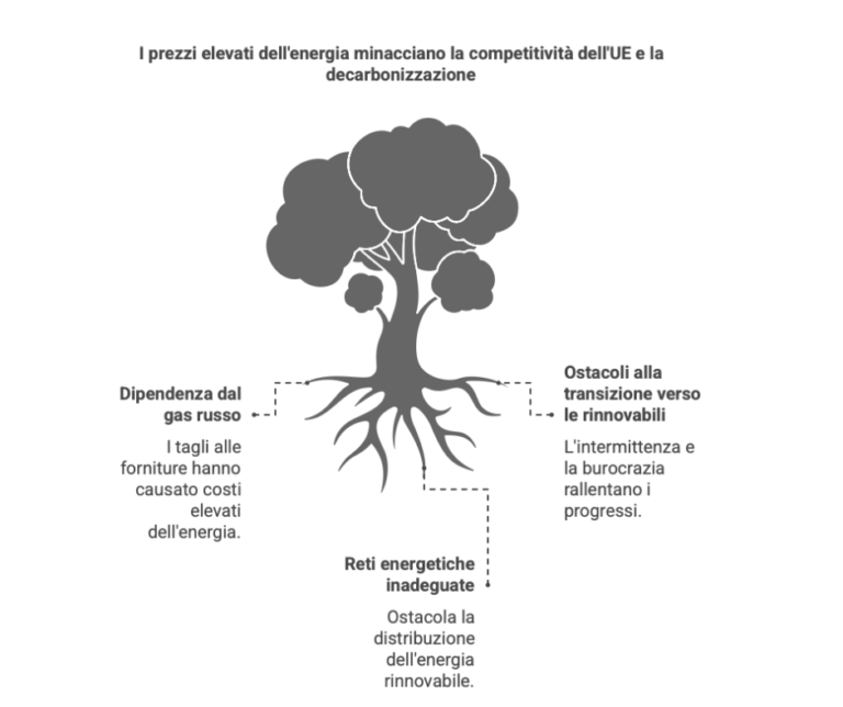 Draghi ha poi offerto una diagnosi per comparti chiave: energia, tecnologia e difesa/spazio. Secondo l’ex presidente della BCE, l’Europa ha perso il suo modello di crescita in tutti e tre questi ambiti a partire dal 2020.